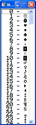 Clique no botão mapa de caracteres para ter uma prévia da tebal ASCII para saber valores de cada elemento da tabela ASC.