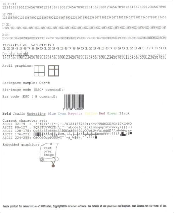 Relatório SAMPLE.PRN do DOSPRINTER impresso com o PRWIN, mesmo resultado: